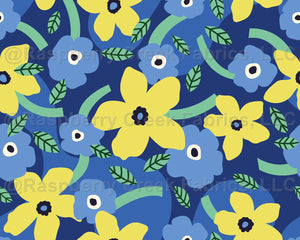 Imagine being in a field of delicate blue and yellow flowers, and if you sneezed hard enough, they'd be sent up into the air in a magical flurry of blooms. That's the story behind this tossed print, which I originally titled "Sneeze." It's a bit like a ditsy floral if scaled very small, but can be a fun allover print at larger scales too.