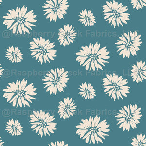 Tossed hand-drawn abstract flower beige and teal