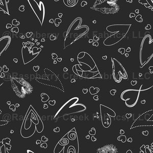 Tossed multidirectional Valentine hearts hand-drawn – love leverage collection - black white - Show your love for hearts, your friends, family, sewing, quilting, shopping, eating with whatever you make from the fabric.