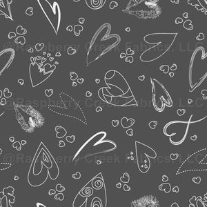 Tossed multidirectional Valentine hearts hand-drawn – love leverage collection - grey white - Show your love for hearts, your friends, family, sewing, quilting, shopping, eating with whatever you make from the fabric.