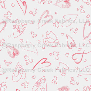 Tossed multidirectional Valentine hearts hand-drawn – love leverage collection - pink orange white - Show your love for hearts, your friends, family, sewing, quilting, shopping, eating with whatever you make from the fabric.