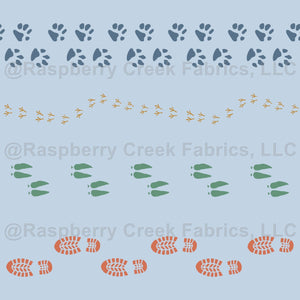 From the NEW Project Wild Side collection for Project Run and Play we bring you an updated version of our original tracks stripes from Project Nature Adventure. With rows of paw prints, bird tracks, hoof prints, and footprints you can create outdoors inspired kids clothing! These designs are perfectly coordinated with the rest of the collection for fun, nature themed mix and match options.