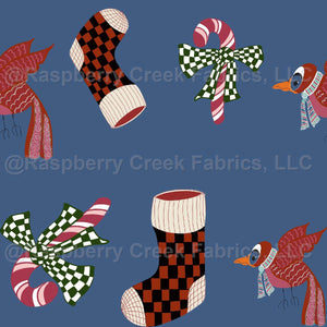 A slight change to the traditional Christmas colors. Federal blue sets the tone for a fun and whimsical Christmas