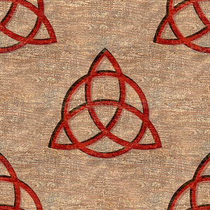 The trinity knot is a symbol for the power of three. This endless knot design looks like it is branded in wood.