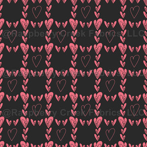 Triple hearts outlined windowpane checkerboard filled with single heart in hand-drawn lineart – love leverage collection – black pink-orange – Fun modern twist on the classic checkerboard in a valentines color palette. Spread some love.
