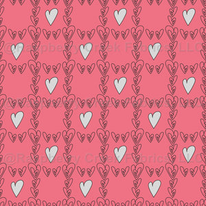 Triple hearts outlined windowpane checkerboard filled with single heart in hand-drawn lineart – love leverage collection – white pink-orange black – Fun modern twist on the classic checkerboard in a valentines color palette. Spread some love.