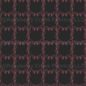 Triple hearts outlined windowpane checkerboard in hand-drawn lineart – love leverage collection – black pink-orange – Fun modern twist on the classic checkerboard in a valentines color palette. Spread some love.