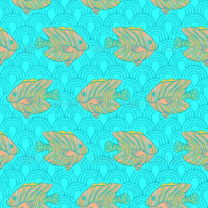 Angelfishes on japanese blue waves! Matching the "japandi waves tropical aqua blue" motif. Have a look in my shop :-) For assorted clothing, swimwear and pajamas or kids indoor clothing, or minky blanket.