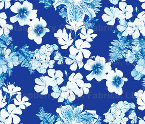 Tropical Floral in Ultramarine Blue, White and Aqua