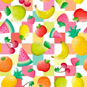 Tropical Fruits on Colorful Pastel Checkers