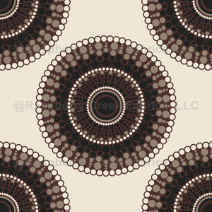 A twist on traditional in our boho abstract Turkey Tail polka dot mandala on a solid white chocolate background in the Night Swim & Molasses palette.