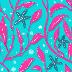 Turquoise, hot pink, white, swim, women, girls, home, summer, seaweed, starfish, bubbles, ocean, beach