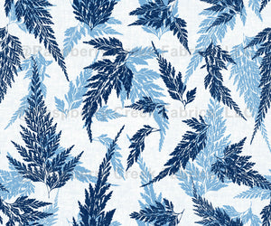 Ultramarine & Periwinkle Fern Leaves Large Tonal Botanical on Cool Beige - Ferns & Foliage
