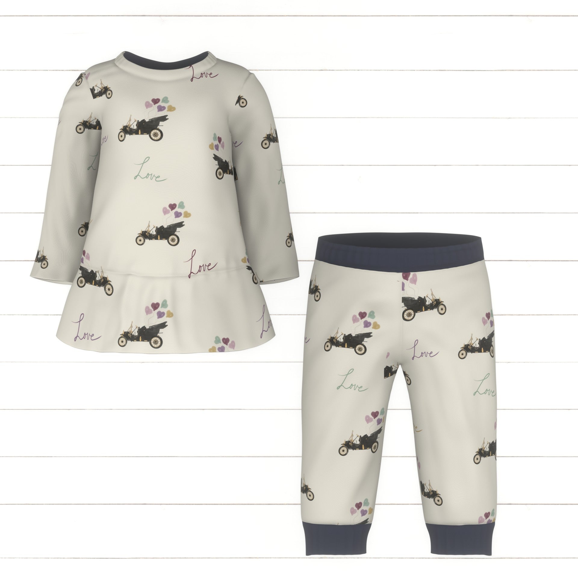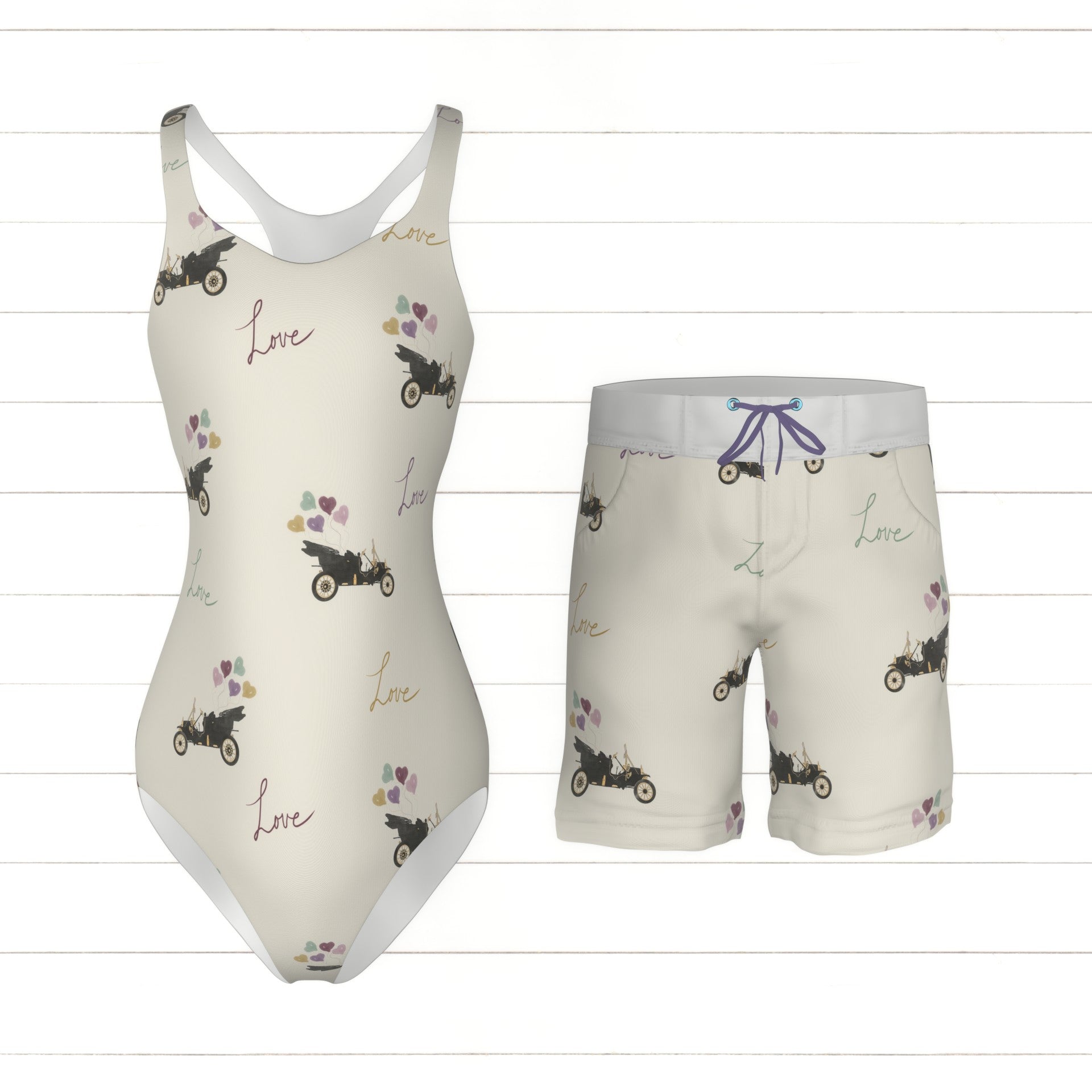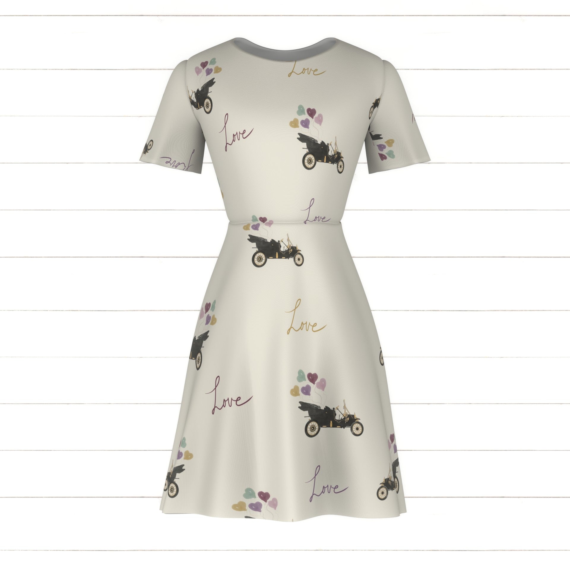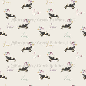 Valenties Day Vintage Car, oatmeal, cream, hearts, balloons, Lavender Willow design