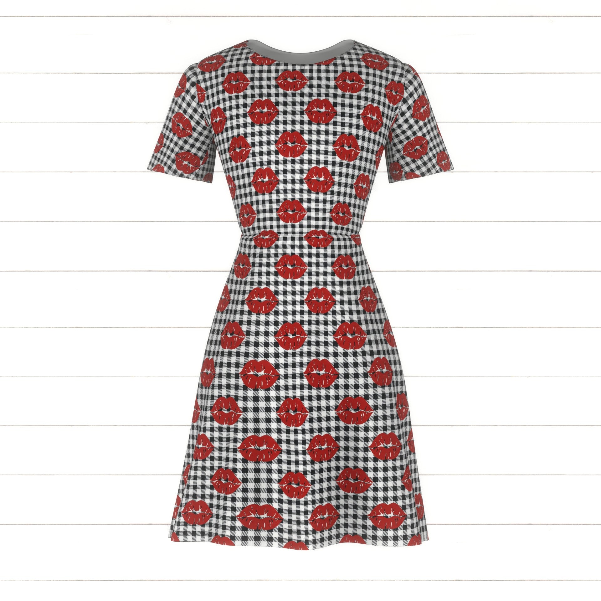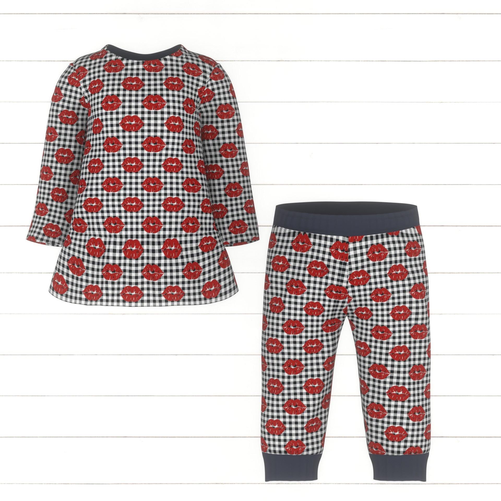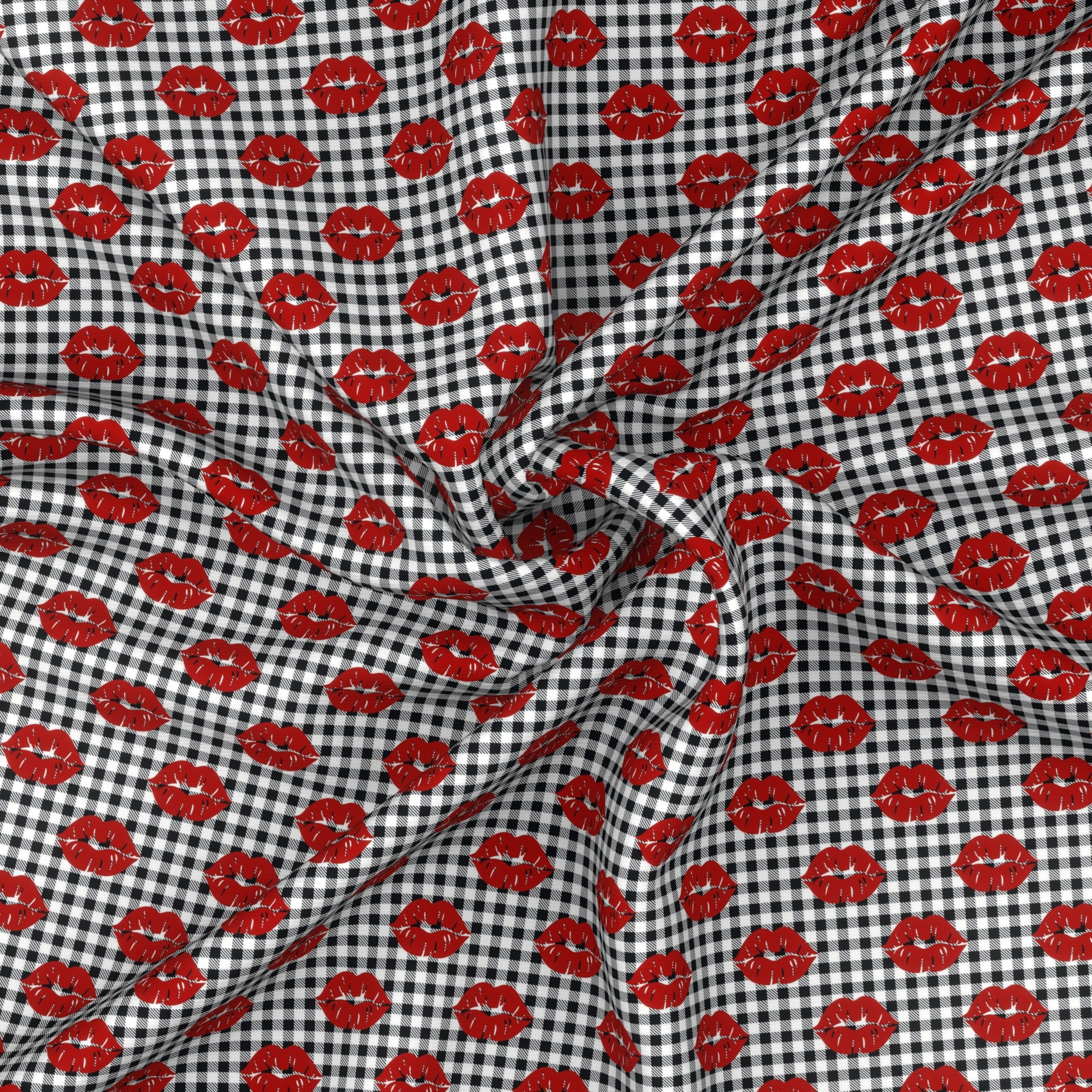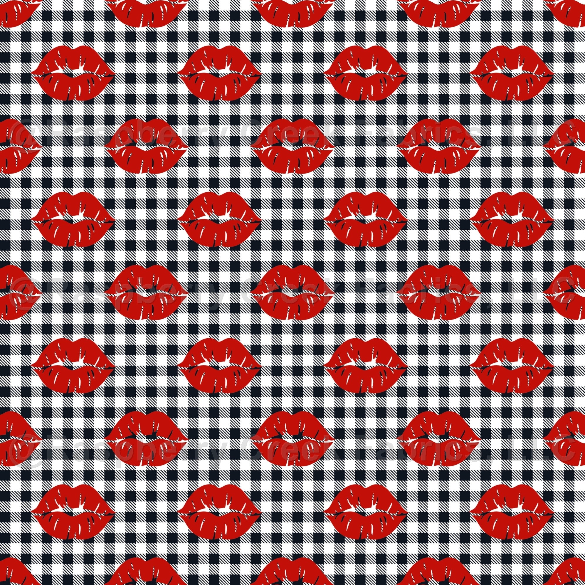 Valentine Kisses on Black and White Gingham