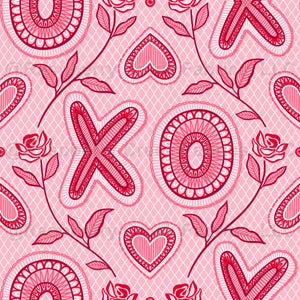 Hand-drawn Valentine lace featuring XO, hearts and roses for a sweet, classic celebration of love