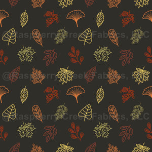 A pattern design featuring vibrant autumn leaves in line art style.