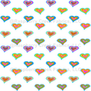 A heartfelt pattern of vibrantly colored hearts against a white background. Perfect for Valentine's Day or Spring projects.