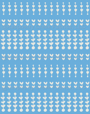 This pattern is part of the Folk Funk Collection in the Meadow Colorway. All designs in the Meadow Colorway utilize the same palette. This is a great collection for kids clothes, kids decor and bedding, quilting, or any project where you need several coordinating prints to choose from.