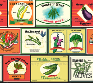 Vintage labels for canned vegetables, seamless pattern