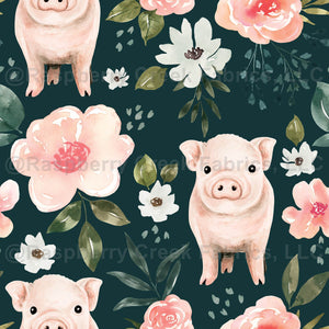 Watercolor Piglet Floral by Cate and Rainn® ©Cate and Rainn. All rights reserved.