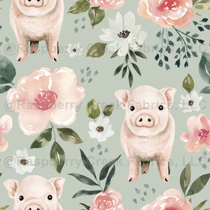 Watercolor Piglet Floral by Cate and Rainn® ©Cate and Rainn. All rights reserved.