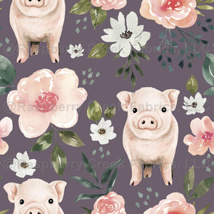 Watercolor Piglet Floral by Cate and Rainn® ©Cate and Rainn. All rights reserved.