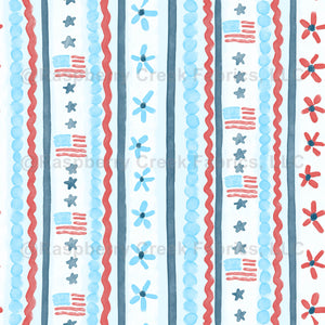 Vintage, vertical stripe, girls, summer, patriotic, flag, USA, America, 4th of July, light blue, red, stripes, floral, turquoise, white