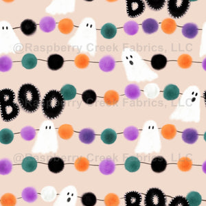 black, boo, cozy, fabric, fall, ghosts, girls, halloween, hand drawn, home Beige, kids, light purple, orange, pom pom garland, purple, studios, tan, teal, white, women
