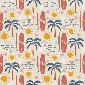 Enjoy this summer design featuring waves, surfboards, palm trees, and sunshine to have you dreaming of days on the beach.