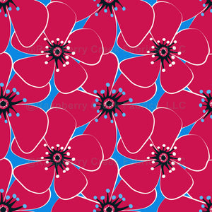 Illustration of Magenta Vivid Blooms. Big Flowers. Pattern on Bright Blue background
