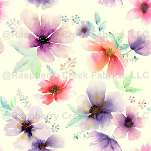 Watercolor abstract bold floral seamless pattern. Watercolour hand drawn colorful purple pink red flower illustration. Multicolor print for wallpaper, wrapping paper, textile, fabric.