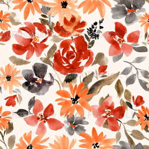 Watercolor Autumn Flowers in Red Orange and Purple on Cream Background