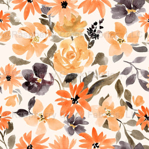 Watercolor Autumn Flowers in Yellow Orange and Purple on Cream Background