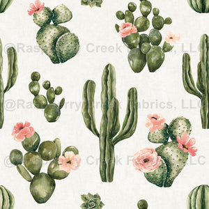 Vintage Boho Desert Floral with Blush Pink Flowers and Cacti by Cate and Rainn® ©Cate and Rainn. All rights reserved.