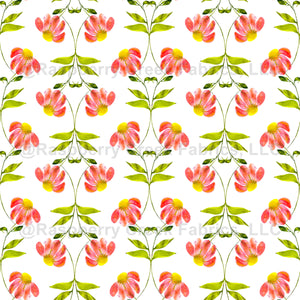 Watercolor Coneflowers in red, pink, green and yellow on white. Coordinate for the Garden Wild Floral Collection. Fabric, home decor, floral