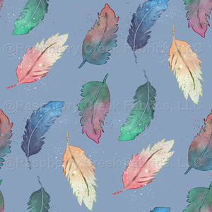 Watercolor feathers in two colors blending in blue, green, pink, orange, and teal in blue