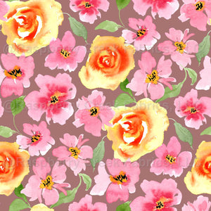 Watercolor Floral Garden with Pink and Orange Roses Spring Meadow Flowers Dusty Pink