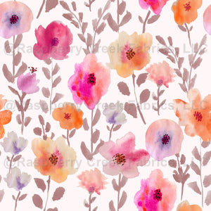 watercolor floral meadow- kids clothing fabric-preppy spring in white