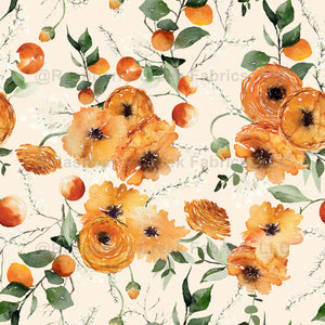 hand painted watercolor orange roses, buds, berries leaves and flowers on warm autumnal backgrounds. perfect for nusery and baby design.