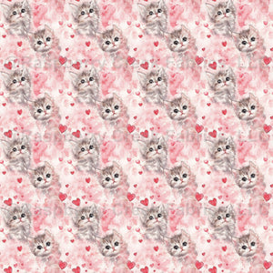 Pets Collection: Watercolor Kittens And Hearts On Pink Background