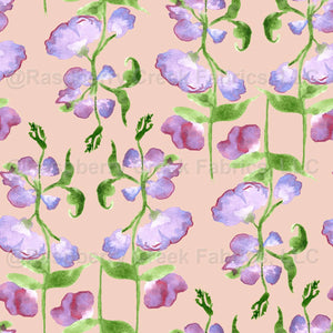 Watercolor Lavender Sweet Pea Flowers in Pastel Peach Background