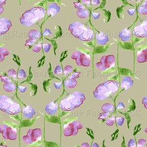 Watercolor Lavender Sweet Pea Flowers in Sage Green Background