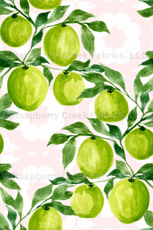 Lime branches on a geometric wavy pattern with a textured light pastel pink background