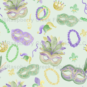 Watercolor Mardi Gras themed seamless print perfect for Mardi Gras themed clothing and decor.