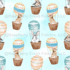 Watercolor, pink, turquoise, blue, sky, Easter, bunnies, rabbits, hot air balloons, spring, spring in the air, kids, girls, boys