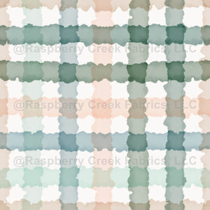 Watercolor, plaid, hand drawn, green, kids, blue, sage green, tan, white, summer, baby, girls, peach