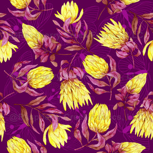 Watercolor Protea Flowers | Deep Magenta and Yellow Color Palette