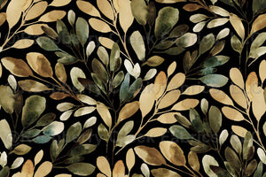 Watercolor Sprigs in Dark brown and green on black