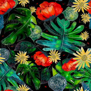 Watercolour Bohemian florals on black